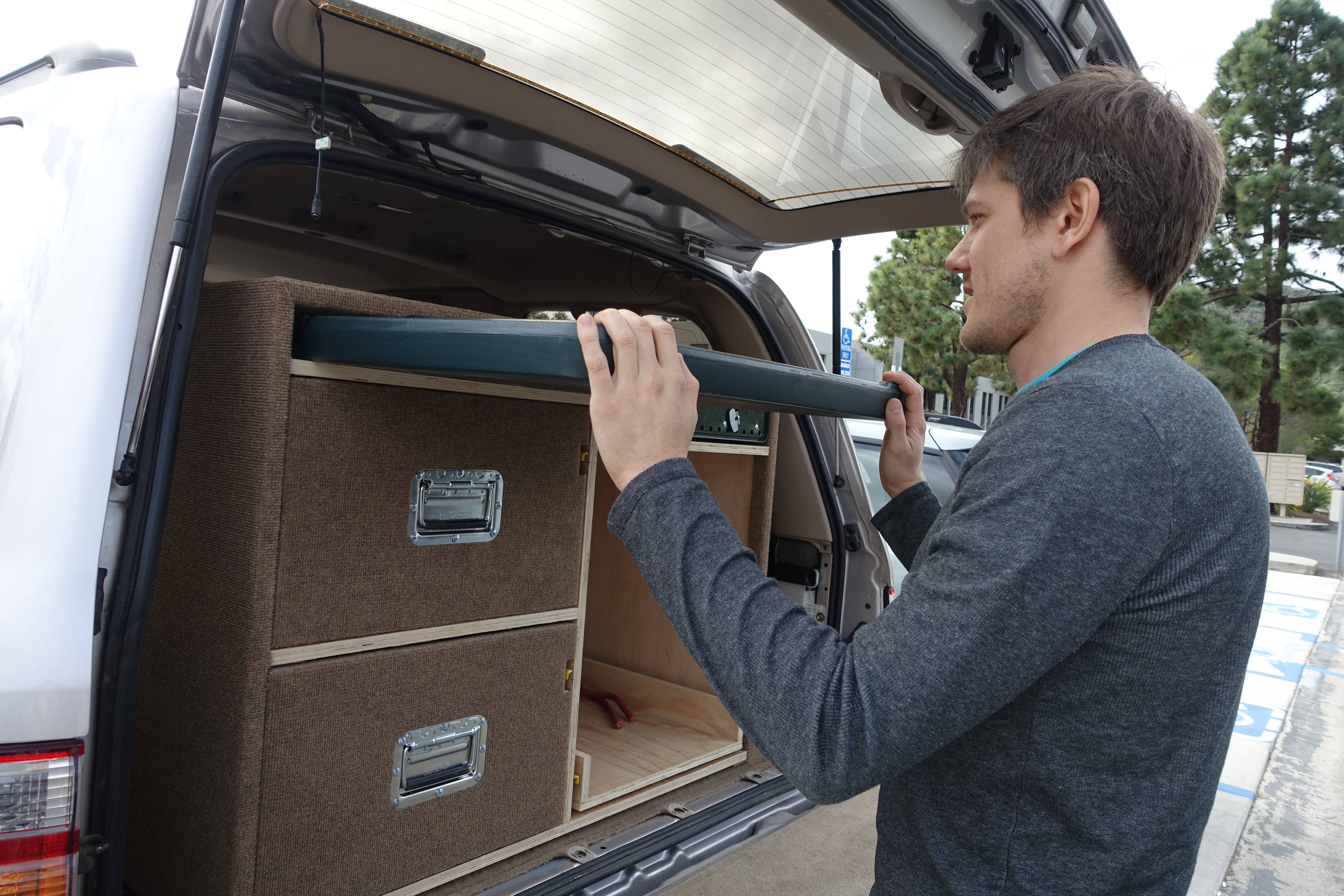 It is the answer to some many of life’s problems. Decided to hack together a storage system for the the trip. Mainly for ease of fridge access.