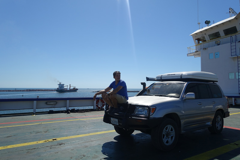 Since we did all the immigration paperwork in Tijuana, the whole procedure from getting into the port to sitting down on the ferry took about 45 minutes. The car was weighed and measured, our Hodori came out to 5.5 m in length and 3500kg (not sure exactly). If you ever decide to do the same thing, then it will cost you ~$4800 mexican pesos for the car and 2 people. We found out the hard way, once you are out of the vehicle – they will NOT let you go back to the deck to get something from your car.